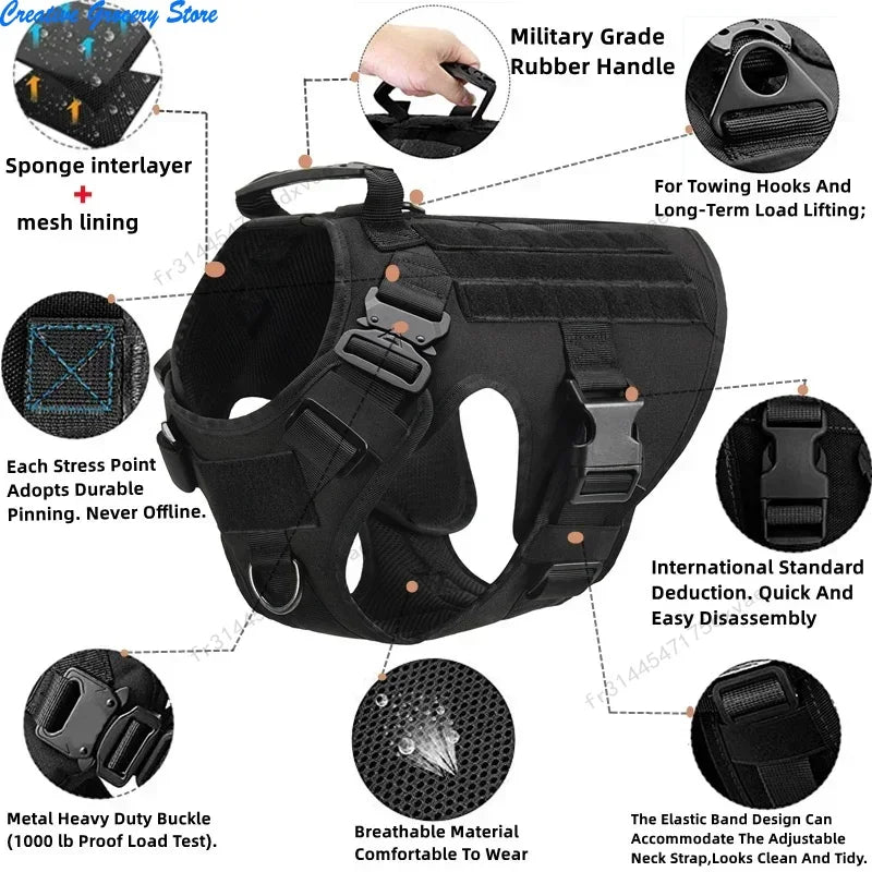 đŸŸ Harnais Tactique Militaire pour Chiens avec Laisse – Pour Toutes Races